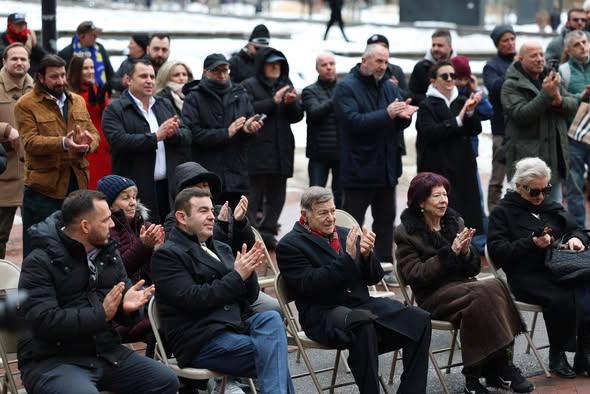 Në çastin që Faton Limani hapi takimin festiv për ngritjen e flamurit të Kosovës, sytë e mi rrëshqitën pas asaj banke të folësit dhe qëndruan në një monument provizor të ngritur me katër flamuj. Pas pak, ai na ftoi në këmbë për të dëgjuar himnet e Amerikës, Shqipërisë dhe Kosovës. Ndërsa flamuri i katërt është edhe ai përtej shekullit, me atë fushën e bardhë të paqes.
