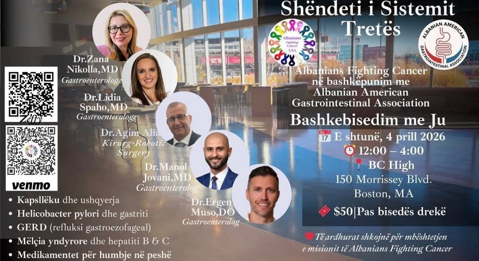 Albanian American Gastrointestinal Association and Albanians Fighting Cancer join forces on April 4th, in Boston, MA, to empower our community and to raise funds for our fight against cancer.