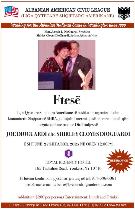 LIGA QYTETARE SHQIPTARO-AMERIKANE JU FTON PËR TË NDERUAR JOE DIOGUARDIN DHE SHIRLEY CLOYES DIOGUARDIN