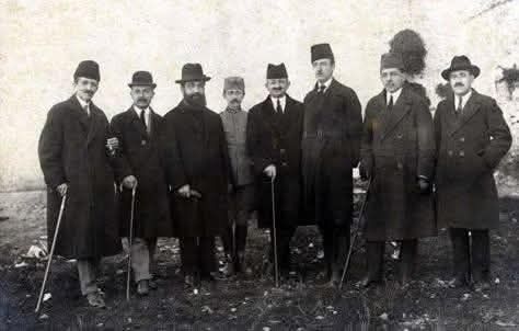 Në foto, qeveria Ypi. Nga e djathta: Kolë Thaçi, Hysen Vrioni, Ahmet Zogu, Xhafer Ypi, Ismail Tatzati, Fan Noli, Spiro Jorgo Koleka, Mehmet Konica (ministër në Londër).