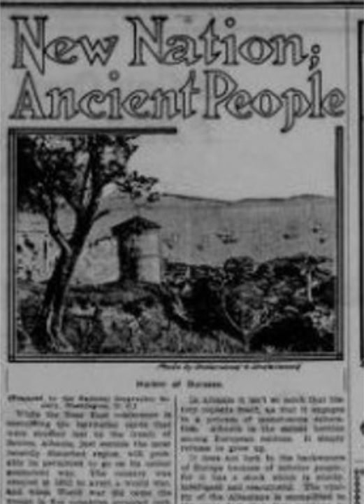 Si njihej Shqipëria nga Amerika dhe perëndimi. Një nja artikull të një gazete amerikane “Cottonwood chronicle, August 10, 1923” botohet një artikull i përgatitur nga National Geographic Society, nga Uashington, D. C. me titull “Komb i ri, popull i lashtë” ku indirekt tregohet mungesa e njohjes nga perëndimi dhe publiku amerikan i popullit shqiptar si edhe fillimi i rritjes së interesit për të.