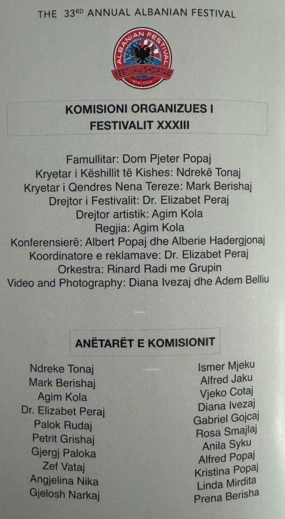 PROGRAMI I FESTIVALIT XXXIII TË KISHËS KATOLIKE “ZOJA E SHKODRËS” NË NEW YORK: