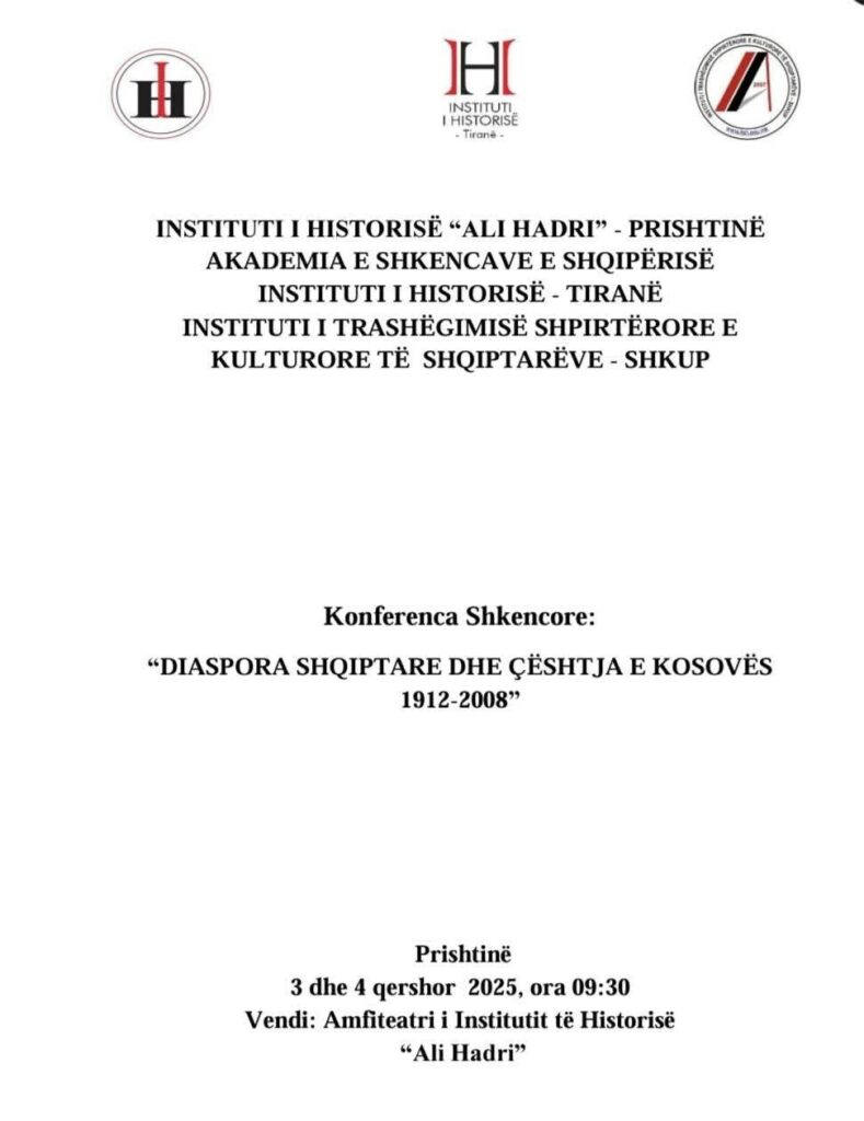 Konferenca Shkencore u organizua nga: Instituti i Historisë – Tiranë, Instituti i Historisë “Ali Hadri” – Prishtinë, Akademia e Shkencave e Shqipërisë, Instituti i Historisë, Instituti i Trashëgimisë Shpirtërore e Kulturore të Shqiptarëve – Shkup.