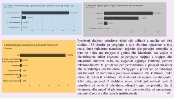 75% e prindërve e vlerësojnë mësimin e shqipes si një mjet për ruajtjen e identitetit kombëtar.