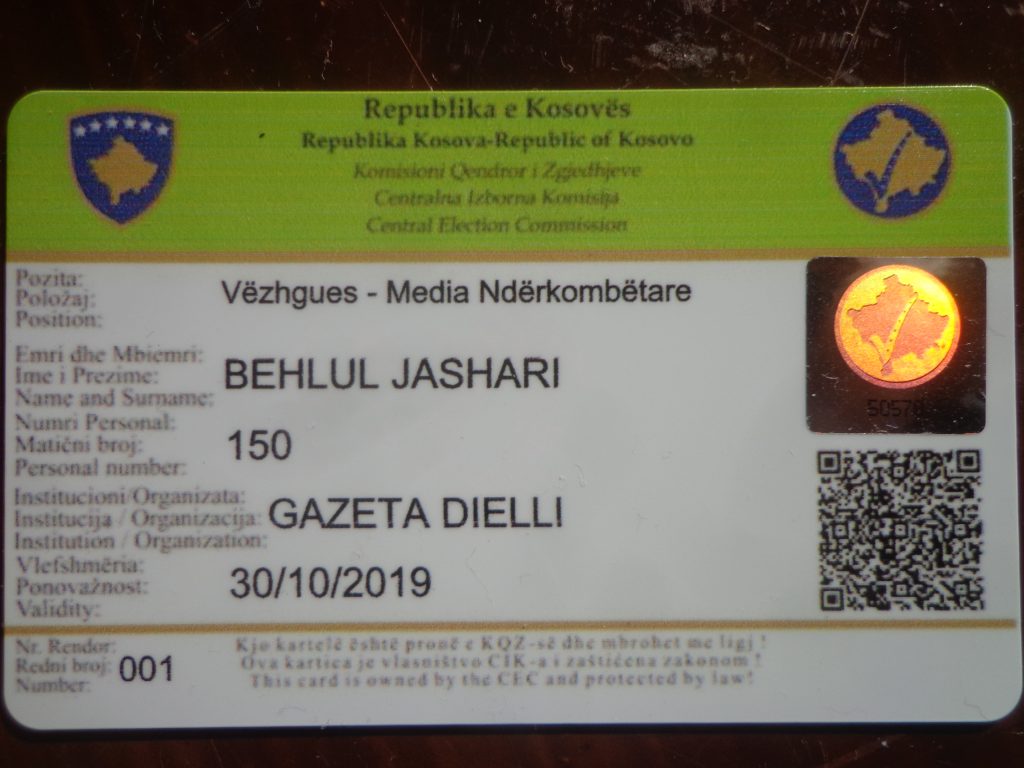 Organi i Federatës Pan-Shqiptare të Amerikës VATRA – Gazeta DIELLI me korrespondentin në Prishtinë është Vëzhguese e Zgjedhjeve të Parakohëshme Parlamentare 2019 në Kosovë, akredituar nga Komisioni Qendror i Zgjedhjeve. ID-Kartela e akreditimit iu dha pasditën e djeshme, si edhe vëzhguesëve të tjerë.