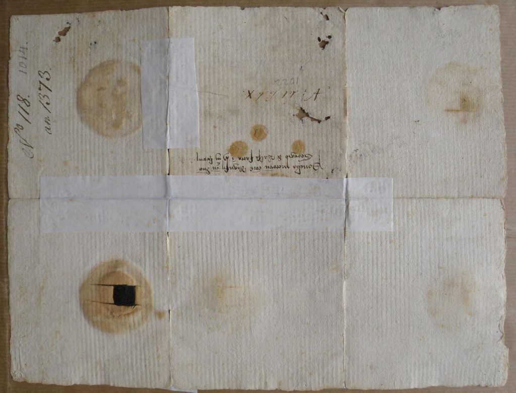 Në fund të shekullit XIX është bërë një restaurim i thjeshtë i kësaj diplome, ku janë vënë 4 pjesë letre të bardhë që diploma të mos grisej apo dëmtohej edhe më shumë. Diploma është e vërtetuar me vulë dylli të kuq, të rrumbullakët, e cila është ngjitur në letër, në fund, në anën e djathtë poshtë tekstit. Vula është shumë e dëmtuar dhe në gjendjen aktuale ka vetëm disa copëza dylli çfarë e bën të pamundur leximin e tekstit që ishte në vulë, tani aty dallon dy apo tre grafema [shih ilustrimin 3]. Shkak i dëmtimit të vulës, është zhvendosja e shpeshtë e këtij dokumenti në relacionet: Dubrovnik-Vjenë-Beograd-Dubrovnik. Këtë dokument e ka shkruar logofeti Vitko, siç mund të vërehet në fund të dokumentit. [Logofeti kryesonte zyrën e kancelarisë së princit-sundimtarit, e cila hartonte dokumente shtetërore, si diplomat, traktatet ndërkombëtare, letrat zyrtare e private të sundimtarit, mbante korrespondencën diplomatike me shtetet tjera, kujdesej për të gjitha llojet e akteve, drejtonte financën, etj.]