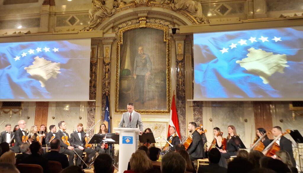 Vjenë, 24 shkurt 2026. Organizuar nga Ambasada e Republikës së Kosovës në Austri, drejtuar nga Albinot Bimbashi dhe stafi i ambasadës shënon Ditën e Pavarësisë në Vjenë.