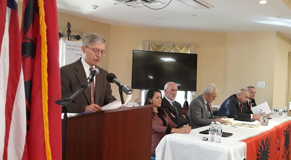 Kisha Katolike Shqiptare në Nju Jork,/ Salla Nëna Tereze, 2 Nëntor, 2019/- Përshëndetje…Falënderimet e mia bashk organizatorëve të këtij simpoziumi, Shoqatës Shqiptaro-Amerikane “Skendërbej” dhe Kishës Katolike, Zoja e Shkodrës –ku 50-vjetë më parë kam hedhur hapat e parë drejtë pjekurisë.