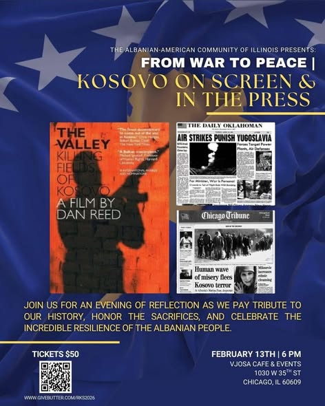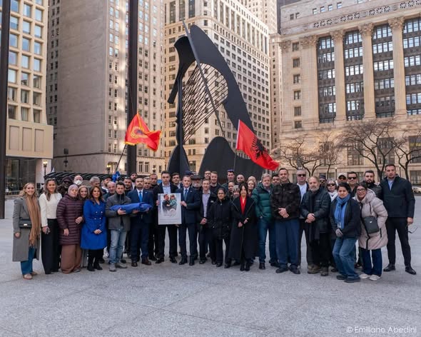 Në qytetin Çikago me pallate të jetës urbane kah qielli i lirë, në organizim të KSHA-së për nder të Ditës së Pavarësisë së Republikës së Kosovës (17 shkurt 2026) u organizua manifestim kombëtar i shqiptarëve nga të gjitha trevat etnike, ku u bë ngritja e flamurit të Kosovës, krah për krah me flamurin e shtetit të Ilinoisit dhe të Amerikës.
