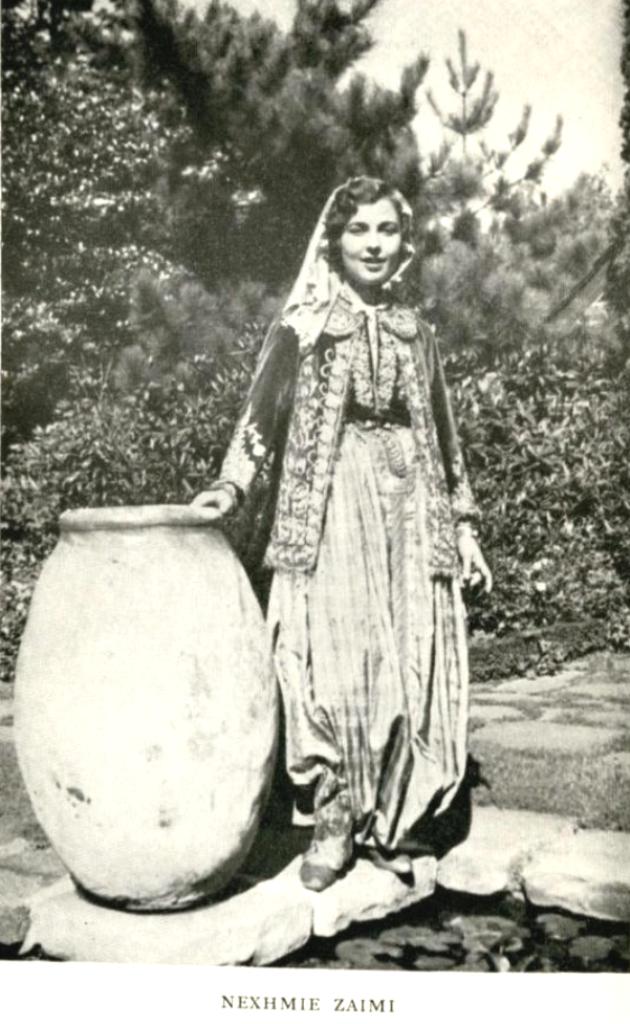 Në një ditë me diell, vështirë se mund të mos e vësh re pamjen e një gruaje shqiptare. E gjatë dhe hijerëndë, ajo lëviz me hijeshi ; busti i saj i ngushtë prej kadifeje është i mbuluar me monedha ari, stoli argjendi, tokëza të smaltuara me ngjyra të ndezura dhe vargje rruazash shumëngjyrëshe. Mbulesa e kokës — zakonisht një kapuç i kuq prej mëndafshi, i ngushtë pas koke — është e qëndisur me fije ari dhe argjendi, dhe rreth e rrotull i janë qepur monedha të rënda ari.
