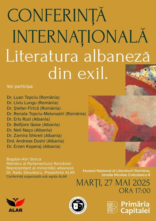 Shoqata Lidhja e Shqiptarëve të Rumanisë (ALAR), në partneritet me Muzeun Kombëtar të Letërsisë Rumune, organizon konferencën ndërkombëtare “Letërsia shqipe në mërgim”, një veprimtari kulturore me përmasa të gjera, kushtuar letërsisë shqipe të krijuar jashtë kufijve, në kontekste migrimi, mërgimi dhe diaspore.