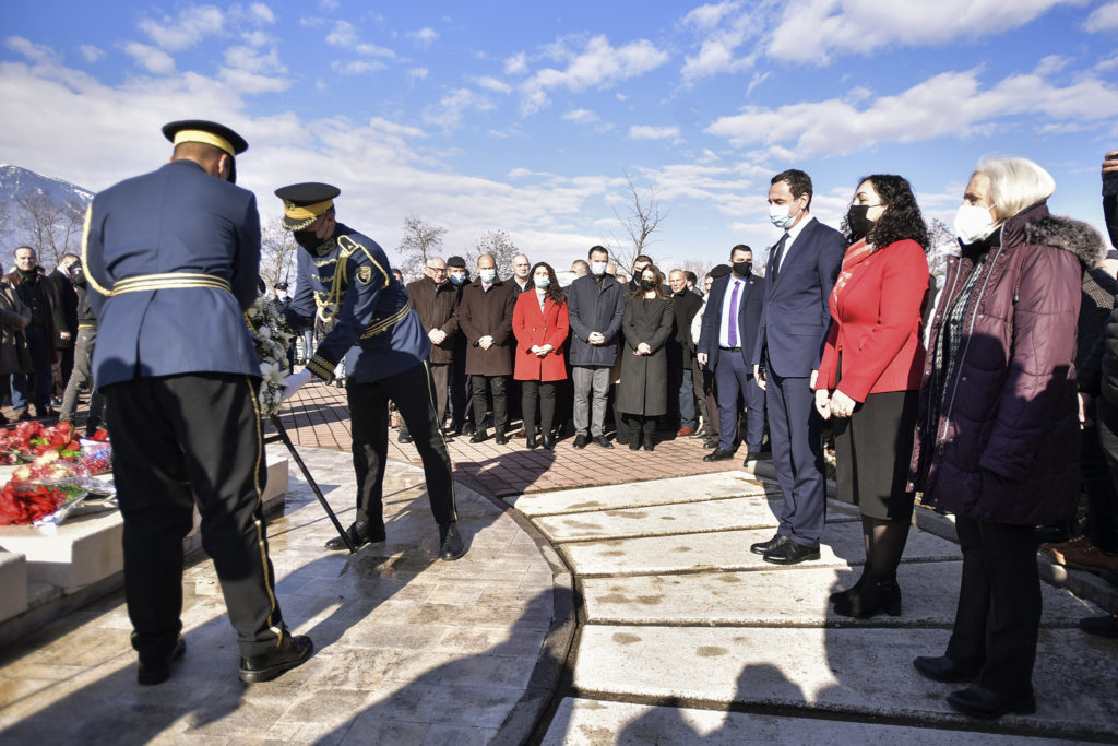 Nga aty, Kryeministri Kurti, Presidentja Osmani dhe Zëvendëskryeministrja Gërvalla, bën homazhe dhe vendosen kurorë me lule, te varrezat e Jusuf dhe Bardhosh Gërvallës.