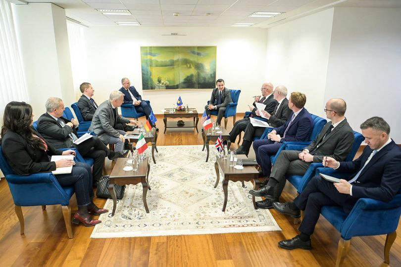 Kryeministri i Republikës së Kosovës, Albin Kurti, i shoqëruar nga zëvendëskryeministri i parë, Besnik Bislimi dhe zëvendësministri i Punëve të Jashtme dhe Diasporës, Kreshnik Ahmeti, takoi ambasadorët e shteteve të QUINT-it dhe Shefin e Zyrës së Bashkimit Evropian në Kosovë.