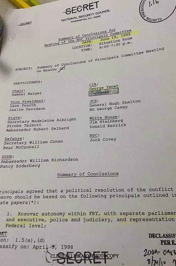 Më 19 qershor 1998, Këshilli për Siguri Kombëtare me prezencën e të gjithë përfaqësuesve të institucioneve të Qeverisë së SHBA-së, merr vendimin historik për UÇK-në që përfaqësuesit e saj të jenë pjesë e negociatave për statusin e Kosovës.