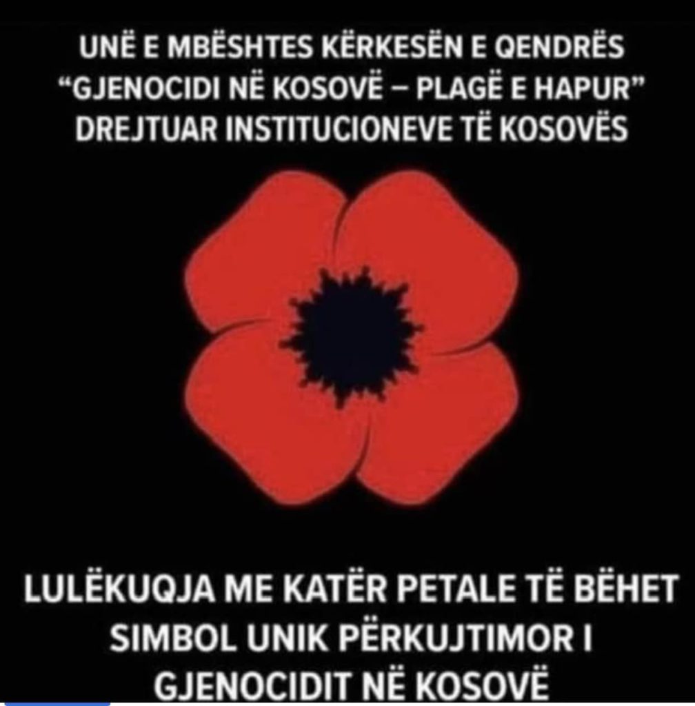 Mbështesim propozimin për miratim nga institucionet shqiptare, që Lulëkuqja e Kosovës me katër petale të jetë simboli përkujtues i vuajtjeve shekullore të kombit nga tmerret serbe.