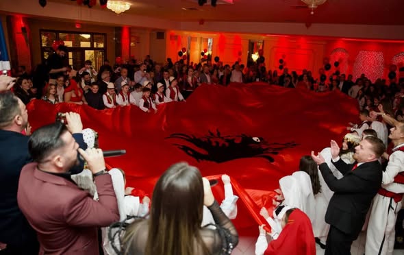 Atmosferën festive e pasuruan edhe interpretimet e artistëve Shpresa Gojani dhe Valdet Luka, të cilët sollën një repertor patriotik që ngjalli bashkim dhe entuziazëm në sallë. Momenti kulmor i mbrëmjes u shënua me sjelljen në skenë të një flamuri të madh kombëtar, rreth të cilit fëmijë, prindër dhe pjesëmarrës u bashkuan në këngë si “Kuq e Zi je ti” dhe “Xhamadani Vija-Vija,” duke krijuar një atmosferë të veçantë simbolike.