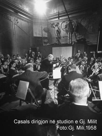 Në vitin 1958 Casals ftohet në OKB për të dhënë një koncert nderi me rastin e “Himnit të OKB” që ai kishte kompozuar vetë. Kronika e vitit 1966 na kujton se prania e Casals në Nju Jork u festua me një drekë me rastin e 50 Vjetorit të Alexander Schneider-it (student e, më pas, koleg e mik i ngushtë i Casals), ku mori pjesë elita botërore e muzikës. Pasdreke ishte planifikuar një vizitë në studion e Gjon Milit. Në shoqërinë e Milit ata u ngjitën në katin e dytë të ndërtesës në Manhatan, ku ndodhej studioja e famshme e fotografit. Dhe pikërisht aty ndodhi diçka e jashtzakonshme, e paimagjinueshme për Casals: sapo Mili hapi derën dhe ftoi Casals të hynte në të, nga brenda vërshuan dallgët e muzikës që e ekzekutonte një orkestër e improvizuar me “60 top instrumentistë kombëtarë (Po aty) e që ishin mbledhur aty, bashkë me spektatorë të tjerë për të nderuar muzikantin e famshëm me vallen “a sardania”, një prej kryeveprave më të bukura e më të dashura me motive popullore katalanase të kompozuar nga vetë Pablo Casals në vitin1926.