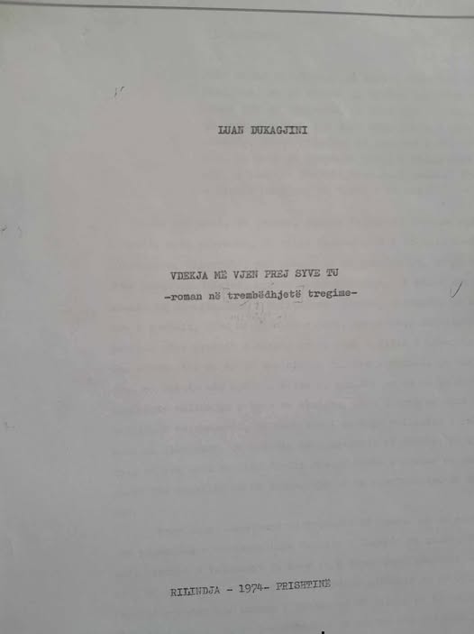 Ky roman, “Vdekja më vjen prej syve tu” – siç e titullon autori, Luan Dukagjini i ndarë në ca “tregime” si kapituj të tij, është vepër me brum alegoriko-satirik marr, te shumtën, nga realiteti ynë bashkëkohor. Është një punim synimesh eksperimentative që sjellë dhe zbaton forma të reja në të shtruarit e lëndës të ngjashme me ato në prozën e Perendimit ku, përkundër të kësaj këtu, në rastet e shumta forma mbizotëron çdo kërkesë tjetër dhe bëhet qëllim i vetvetes. Është vepër më shumë meditativo-cerebrale se ndjenjore (megjithëse kapitujt “Trashja” dhe, sidomos, “Romana” dëshmojnë për mundësi jo të vogla të autorit për njomësimin letrarë të punimeve të veta) pra, na duket, në të parë, edhe më pak letrare në krahasim me shkrime të zakonshme me të cilat jemi mësuar të takohemi jo vetëm në prozën tanë. Romani, kështu, ka peshën e vet edhe si prozë vërtet e angazhuar bashkëkohore, edhe si kërkim i rrugëve të reja të trajtimit të materies jetësore të këtij ambienti – çka është apsolutisht pozitive.