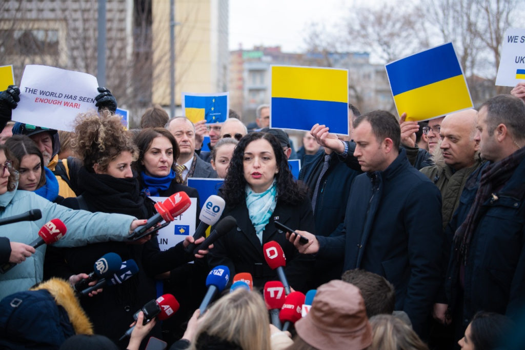 “Natyrisht, se ajo çfarë po përjeton populli i Ukrainës në këto momente na rikthen kujtimet e plagëve të rënda që janë shkaktuar mbi secilin qytetarë të Kosovës gjatë viteve të ’90 nga regjimi gjenocidal i Serbisë. Prandaj, edhe i jemi bashkuar botës demokratike, i jemi bashkuar aleatëve tanë jo vetëm për ta dënuar agresionin rus mbi Ukrainën, por në të njëjtën kohë për të kërkuar përgjegjësi për krimet që po i kryen krimineli i luftës, diktatori Putin. Do të qëndrojmë të bashkuar, do të bashkojmë zërin dhe veprimet tona sikurse edhe deri më tani, dhe jam e bindur që sikurse në rastin e Kosovës në vitin ’99, edhe tani në Ukrainë në vitin 2022 do të triumfojë liria dhe demokracia”, ka theksuar Presidentja Osmani. Sipas Presidentes Osmani, Kosova me të gjitha kapacitetet e saj është e gatshme të pres refugjatë nga Ukraina.