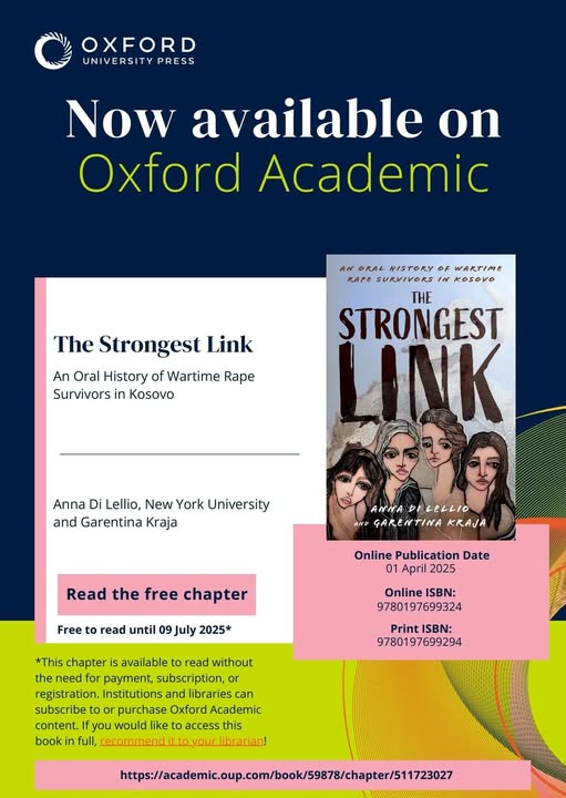 The indictment coincides with the recent release of The Strongest Link: An Oral History of Wartime Rape Survivors in Kosovo (Oxford University Press, 2025) by Anna Di Lellio and Garentina Kraja. The book features stories of 20 women who survived weaponized rape during the Kosovo War (1998–1999). Through personal narratives, the book highlights their experiences of terror, resilience, and bravery amid ethnic cleansing and state repression.