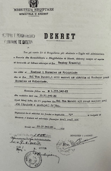 Faksimili dokumentit,nenshkruar nga drejtori i konviktiti Ibrahim Kelmendi