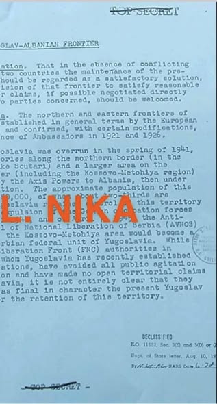 Një dokument që kam marrë nga arkivi i presidentit Harry S. Truman (Declassified: E.O. 11632, Sec. 3(E) and 3(D) or (E); Dept. of State letter, Aug. 10, 197_), dëshmon për rezistencën e shqiptarëve të Kosovës ndaj forcave partizane jugosllave. Po ashtu, ai evidenton mosinteresimin e Partisë Komuniste të Shqipërisë dhe të krerëve të saj që Kosova të ishte pjesë e shtetit shqiptar, siç kishte qenë gjatë viteve të pushtimit nga Italia fashiste.