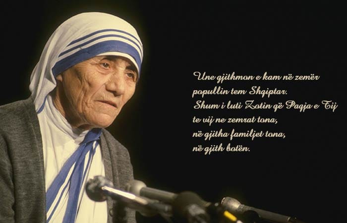“Unë gjithmonë e kam në zemër popullin tem shqiptar. Shumë luti Zotin qi Pagja e Tij të vijnë në zemrat tona, në gjithë familjet tona, në gjithë boten. Lutuni shumë për fukaratë e mij-dhe për mua dhe motrat e mija. Unë lutem për juve”