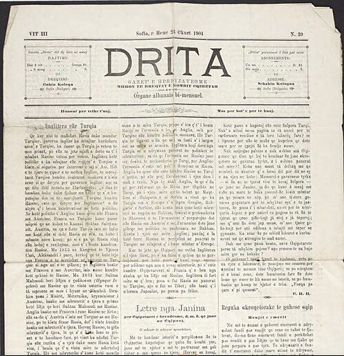 Sqipetari: Gazeta u botua në Bukuresht nga Shoqëria “Drita”. Nga gushti 1888 deri janari 1890, me mbështetjen financiare të qeverisë rumune, u botuan 28 ose 29 numra.