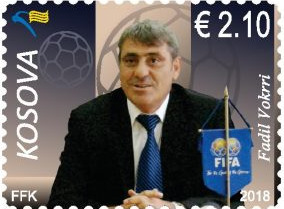 Ne fig.8 emisioni i vitit 2018 i filatelise Kosovës, kushtuar figurës së Fadil Vokrrit, një prej personaliteteve më të rëndësishëm të futbollit në Kosovë (legjendë e KF Prishtina dhe president i FFK). Pulla postare shfaq portretin e F.Vokrrit, duke e nderuar si një prej figurave kyçe që kanë kontribuar në zhvillimin e futbollit në Kosovë dhe njohjen e tij ndërkombëtare. Përmes kombinimit të portretit, simbolikës së FIFA-s dhe elementeve shtetërore, theksohet rëndësia historike dhe sportive e këtij personaliteti për vendin.