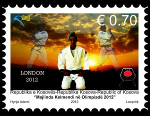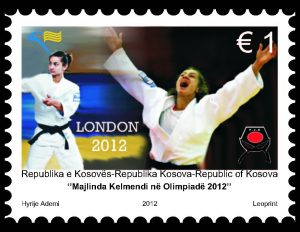 Ne fig.3 imazhi përmban dy pulla postare të Republikës së Kosovës, të vitit 2012, kushtuar sportistes së xhudos Majlinda Kelmendi dhe pjesëmarrjes së saj në Lojërat Olimpike “LONDON 2012”. Pulla e majtë ka një kompozim artistik me një sfond perëndimi dielli duke paraqitur një figurë xhudistesh në pozicion statik. Pulla e djathtë paraqitet Majlinda Kelmendi duke festuar një fitore, me duart lart dhe një fytyrë ekspresive triumfi. Mbishkrimi zyrtar është: “Majlinda Kelmendi në Olimpiadë 2012”