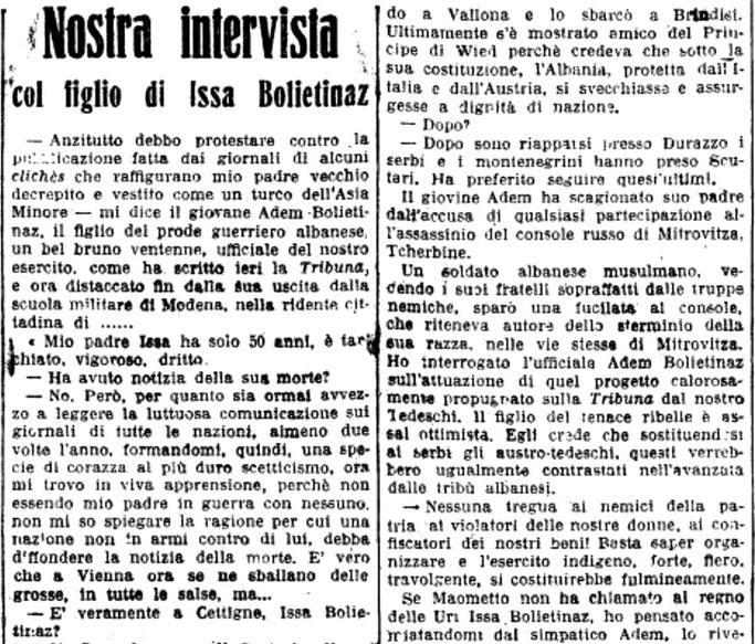 “Po imperializmi italian? Po imperializmi shqiptar? Ju mund të jeni të sigurt, — tha ai prerazi, — se ka një imperializëm shqiptar. Është si imperializmi zviceran. Ne jemi shumë ambiciozë. Ne duam të ecim përpara (të përparojmë) dhe të bëhemi Zvicra e Ballkanit. Ne duam rrugë, shkolla, industri, fusha prodhuese dhe pyje në malet tona. Dhe ne po punojmë për këtë me gjithë fuqinë tonë.”