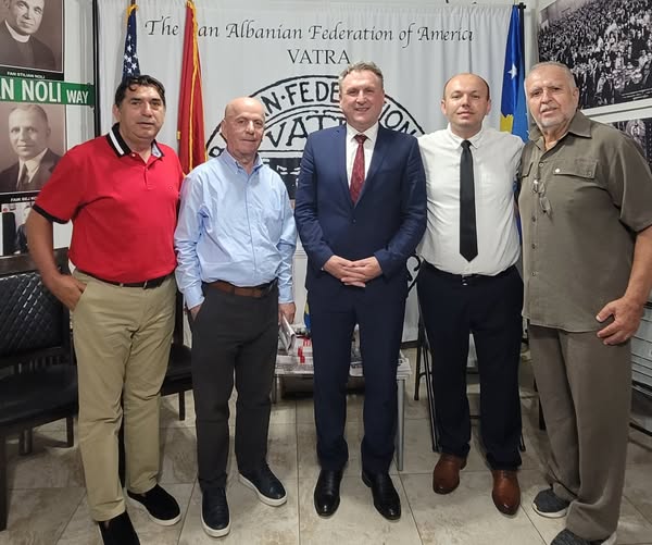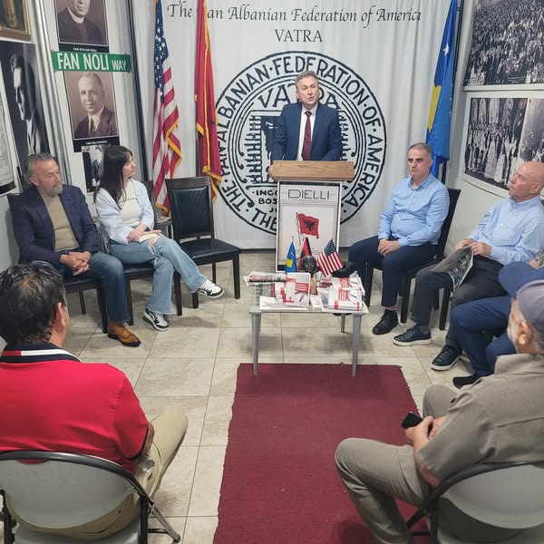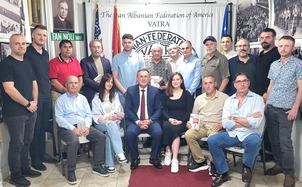 New York, 7 Qershor 2025 – Federata Pan-Shqiptare e Amerikës Vatra promovoi librin publicistik “Linja politike, diplomatike dhe shtetformuese”, të diplomatit Imer Lladrovci. Libri përmbledh në mënyrë të shkëlqyer paraqitjet publike dhe qëndrimet e dokumentuara në: kumtesa, trajtesa, intervista, opinione, shkrime autoriale, fjalime, analiza, komente etj., të cilat trajtojnë elementë themelore të shoqërisë, diplomacisë, shtetit, politikës e mërgatës shqiptare. Vepra e Lladrovcit është një kontribut i vyer publicistik që përmbledh një rrugëtim sa politik dhe diplomatik të autorit dhe institucioneve që ka shërbyer e përfaqësuar.