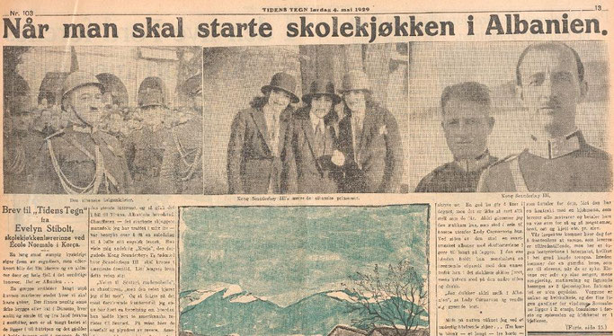 Gazeta norvegjeze “Tidens Tegn” ka botuar, të shtunën e 4 majit 1929, në faqet n°13 dhe 15, rrëfimin e Evelyn Stibolt, mësueses norvegjeze të kuzhinës shkollore rreth eskperiencës së saj në shkollën për vasha në Korçë, të cilin Aurenc Bebja, nëpërmjet Blogut “Dars (Klos), Mat – Albania”, e ka sjellë për publikun shqiptar :