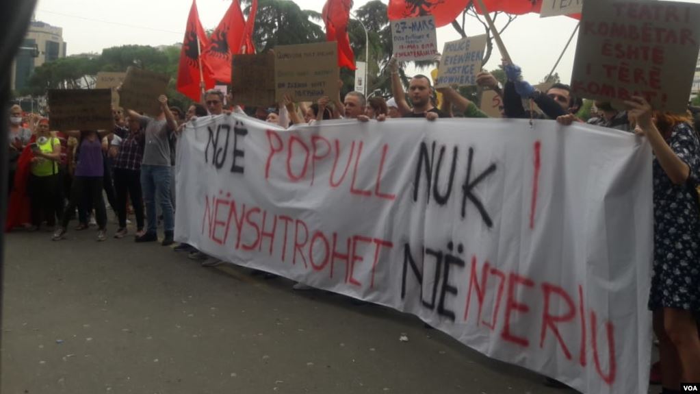 Tirane, 18 Maj 2020- Në Tiranë, nisi sot pasdite një protestë e thirrur nga Aleanca për Mbrojtjen e Teatrit, një ditë pasi autoritetet ndërhynë me forcë për shembjen e godinës së Teatrot Kombëtar. Të mbledhur në bulevard, pak metra larg rrënojave të Teatrit, ishin artistë, aktivistë të shoqërisë civile, qytetarë, por dhe drejtuesë të opozitës të cilët i kanë dhënë mbështetje kësaj lëvizjeje.