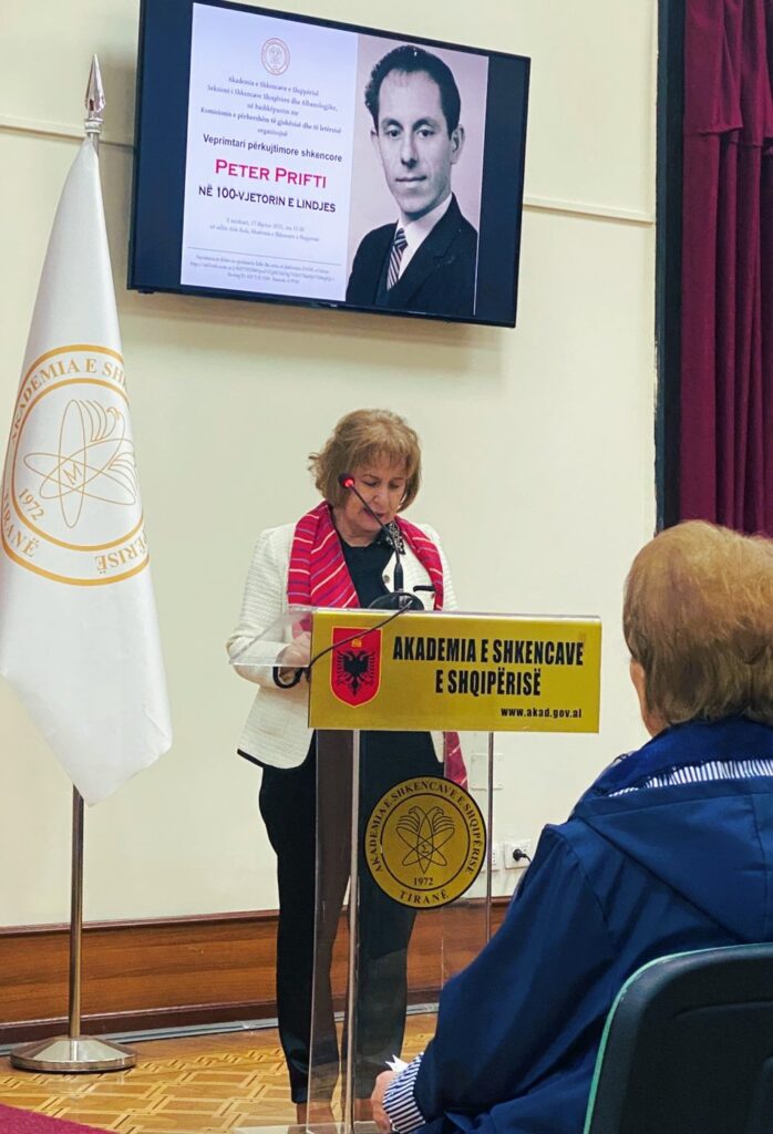 Prof. dr. Anila Omari, Kryetare e Komisionit të përhershëm të gjuhësisë dhe të letërsisë, në fjalën e hapjes theksoi se Peter Prifti ka dhënë një kontribut të rëndësishëm në njohjen e Shqipërisë së viteve ‘70-‘80 në Shtetet e Bashkuara të Amerikës dhe në botën perëndimore, por në atdheun e tij nuk është dhe aq i njohur. Kjo konferencë do të ndriçojë jetën, veprën dhe kontributin e tij.