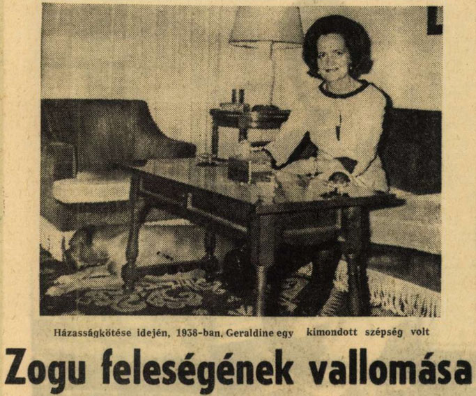 Gazeta hungareze “Új Ifjúság” ka botuar, me 23 prill 1968, në faqen n°9, intervistën ekskluzive të Mbretëreshës Geraldinë në Madrid me reporterin e gazetës gjermane “Neue Post”, të cilën Aurenc Bebja, nëpërmjet Blogut “Dars (Klos), Mat – Albania”, e ka sjellë për publikun shqiptar :