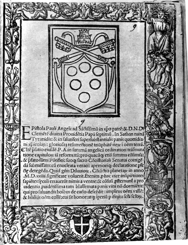 2. “Epistola Pauli Angeli ad Sanctissimum Dominum Nostrum Dominum [D.N.D] Clementem diuina Prouidentia Papam septimum. Venezia: Bernardino Viani da Lissona, 1525;”